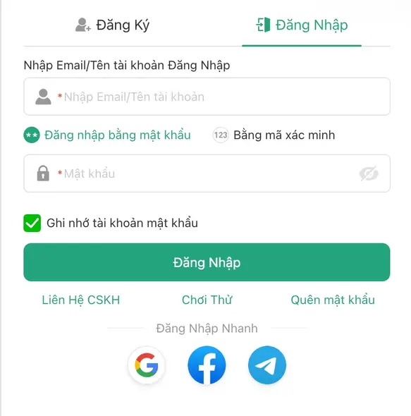 - Nhập tên tài khoản và mật khẩu đã đăng ký.